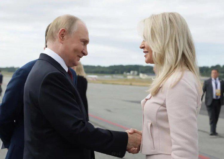 在他身旁,一个金发女子频繁出镜。她不仅在阿拉斯加迎送普京,还在白宫的南草坪上接待欧洲政要。